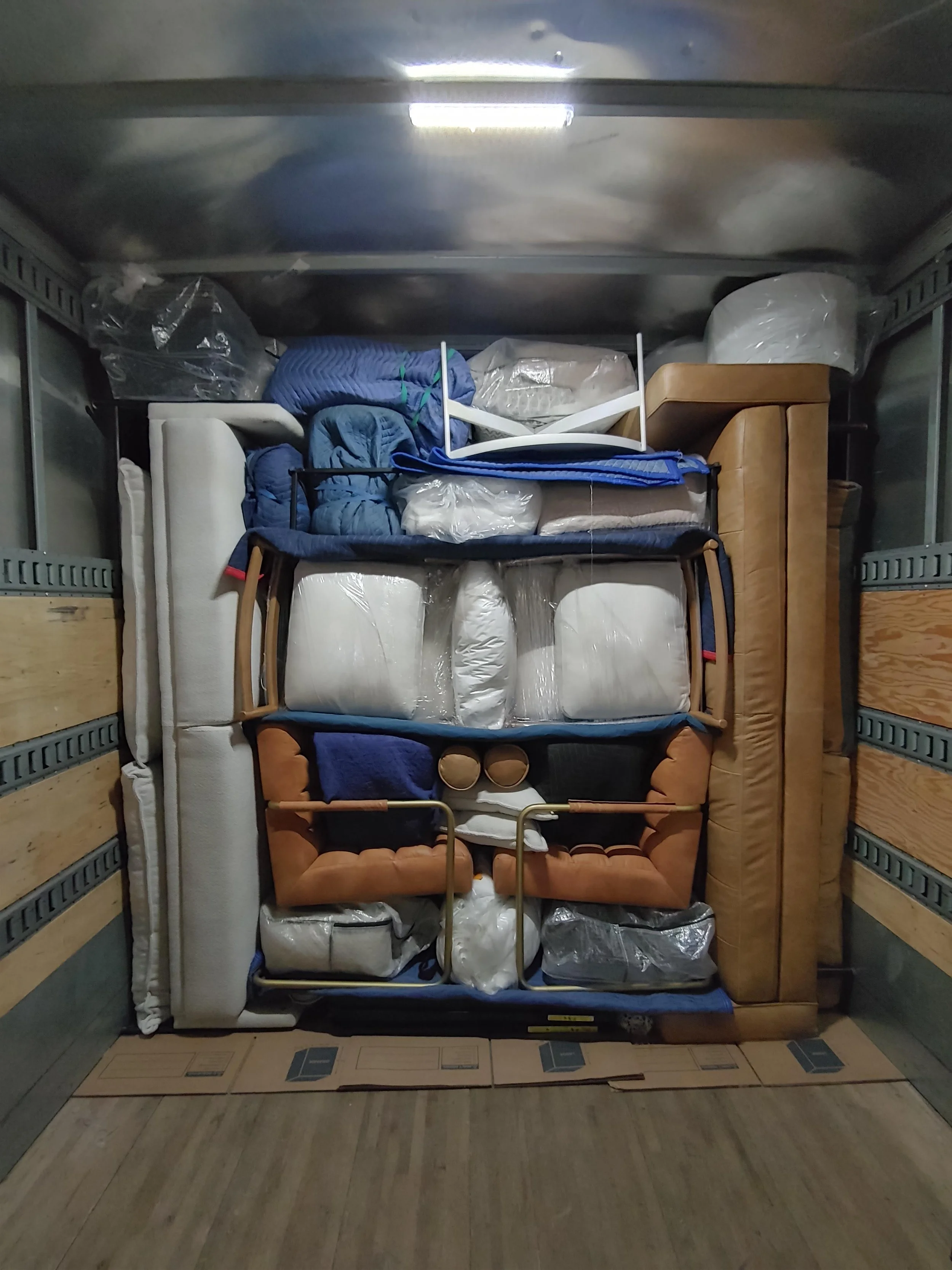 Loading is done in an organized sequence to prevent shifting during transport and to make unloading efficient. Items are grouped by room, heavier pieces are secured first, and fragile items are protected within the load. At the destination, belongings are unloaded room by room and placed according to the customer’s instructions. Disassembled items are reassembled, and a final walkthrough ensures everything is accounted for before the move is complete.